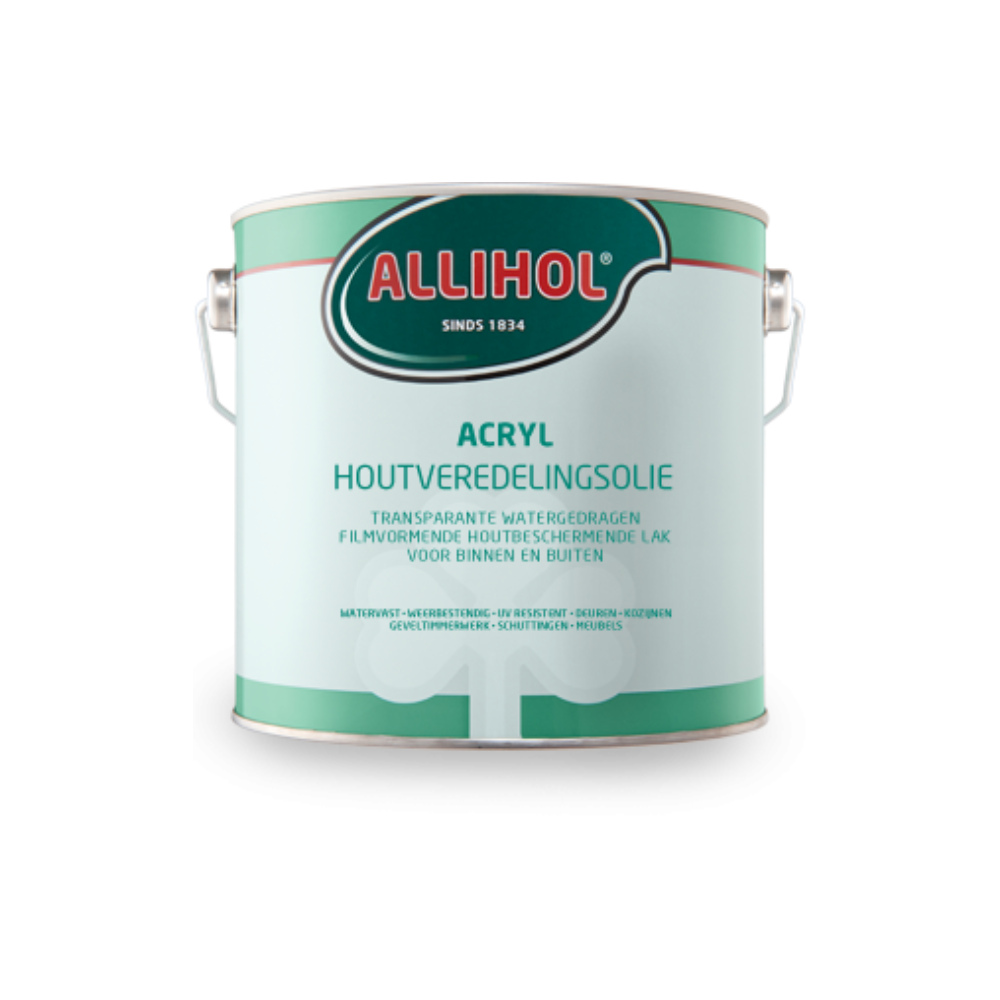 De Allihol Acryl Veredelingsolie is een hoogwaardige, watergedragen olie die speciaal is ontwikkeld voor het duurzaam beschermen en veredelen van hout. Deze olie dringt diep door in het hout en accentueert de natuurlijke structuur en kleur, terwijl het oppervlak wordt beschermd tegen vocht, vuil en vergrijzing. Dankzij de samenstelling op basis van acrylhars biedt de olie een ademende, waterafstotende laag die het hout laat ademen maar voorkomt dat water binnendringt.