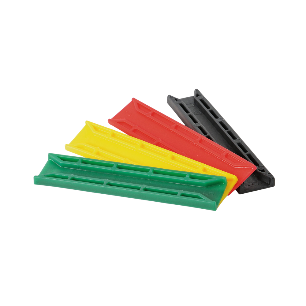 De kunststof blokjes zijn vormvast, sterk en eenvoudig te verwerken. De kleurcodering maakt het direct zichtbaar welke dikte je gebruikt, wat het werk sneller en nauwkeuriger maakt.