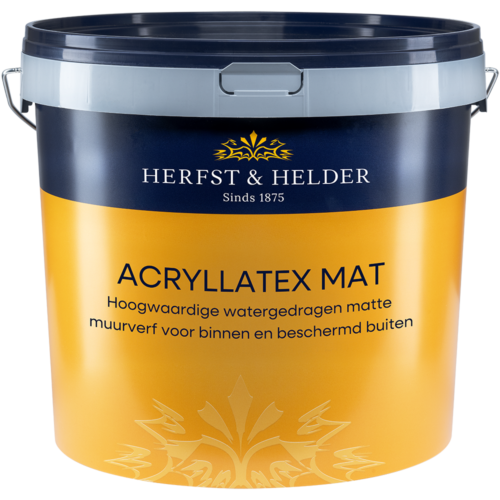 Herfst & Helder Acryllatex Mat is een hoogwaardige, watergedragen muurverf voor binnen die zorgt voor een strak en egaal mat eindresultaat. Deze acryllatex is geschikt voor het schilderen van muren en plafonds en hecht uitstekend op ondergronden zoals pleisterwerk, stucwerk, beton, gipsplaten en bestaand schilderwerk.