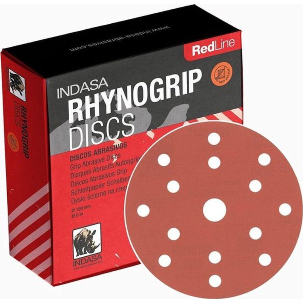 Bij Rozema Coatings zijn de Indasa RedLine Rhynogrip Ø150mm schuurschijven verkrijgbaar in verschillende korrelgroftes, zodat voor elke toepassing – van grof schuren tot fijn afwerken – de juiste schijf beschikbaar is.