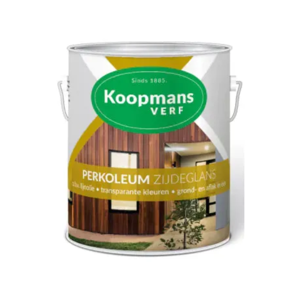Koopmans Perkoleum zijdeglans is een hoogwaardige, oplosmiddelarme verfbeits op basis van alkydhars en lijnolie, geschikt voor vrijwel alle houtsoorten buitenshuis. Dit product combineert de eigenschappen van een beits en lak in één duurzaam éénpot-systeem, ideaal voor toepassingen in de woningbouw, stallenbouw, caravanbouw en andere houtrijke constructies. Daarnaast kan Perkoleum ook worden gebruikt als traditionele muurolie op steenachtige ondergronden.