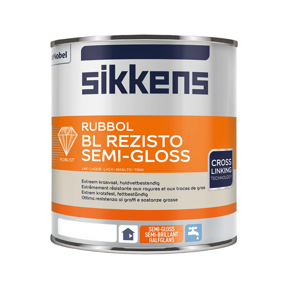 Sikkens Rubbol BL Rezisto Semi-Gloss is een hoogwaardige, watergedragen halfglanslak die zorgt voor een duurzame, krasvaste en goed reinigbare afwerking van binnenschilderwerk. De verf combineert een subtiele glans met uitstekende bescherming tegen slijtage, vlekken en vuil dankzij de geavanceerde Stain Shield Technology.