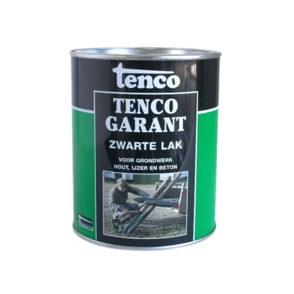 TencoGarant Zwarte Lak is een duurzame, zuur- en alkalibestendige lak die speciaal is ontwikkeld voor hout, metaal en beton die permanent in contact staan met grond of oppervlaktewater. De zwarte, matte coating hecht direct op oude teer- en bitumenlagen en biedt een sterke beschermlaag voor toepassingen zoals palen, beschoeiingen, funderingen en mestsilo’s.