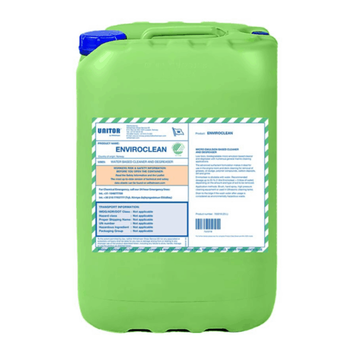 Unitor™ Enviroclean™ is een sterk geconcentreerde, watergedragen ontvetter van professionele kwaliteit, ontwikkeld voor het grondig reinigen van machinekamers, dekken en andere maritieme omgevingen. Deze krachtige reiniger verwijdert moeiteloos vet, olie, slib, koolstofafzettingen, polymeren, vuil en roet, en is ideaal voor algemeen onderhoud aan boord van schepen en industriële installaties.
