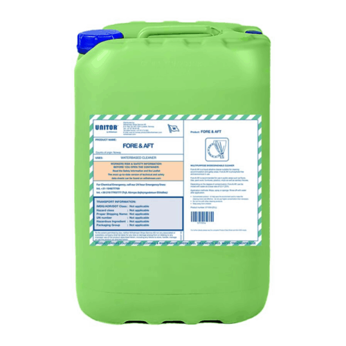 Unitor™ For & Aft is een krachtige, watergedragen reiniger die speciaal is ontwikkeld voor het grondig reinigen van scheepsruimtes zoals machinekamers, dekken en technische ruimtes. Deze professionele allesreiniger verwijdert moeiteloos vet, olie, vuil en andere hardnekkige verontreinigingen die ontstaan tijdens dagelijks scheepsgebruik.