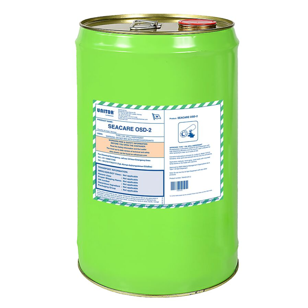 Unitor™ Seacare OSD-2™ is een professioneel, biologisch afbreekbaar dispergeermiddel op koolwaterstofbasis dat is ontwikkeld voor het effectief behandelen en verwijderen van olievervuiling op zee, stranden en andere wateroppervlakken. Het product heeft een hoge verspreidingsefficiëntie, lage toxiciteit en is goedgekeurd als Type I-dispergeermiddel volgens de LR448-specificaties van het Britse Department for Environment, Food & Rural Affairs (DEFRA).